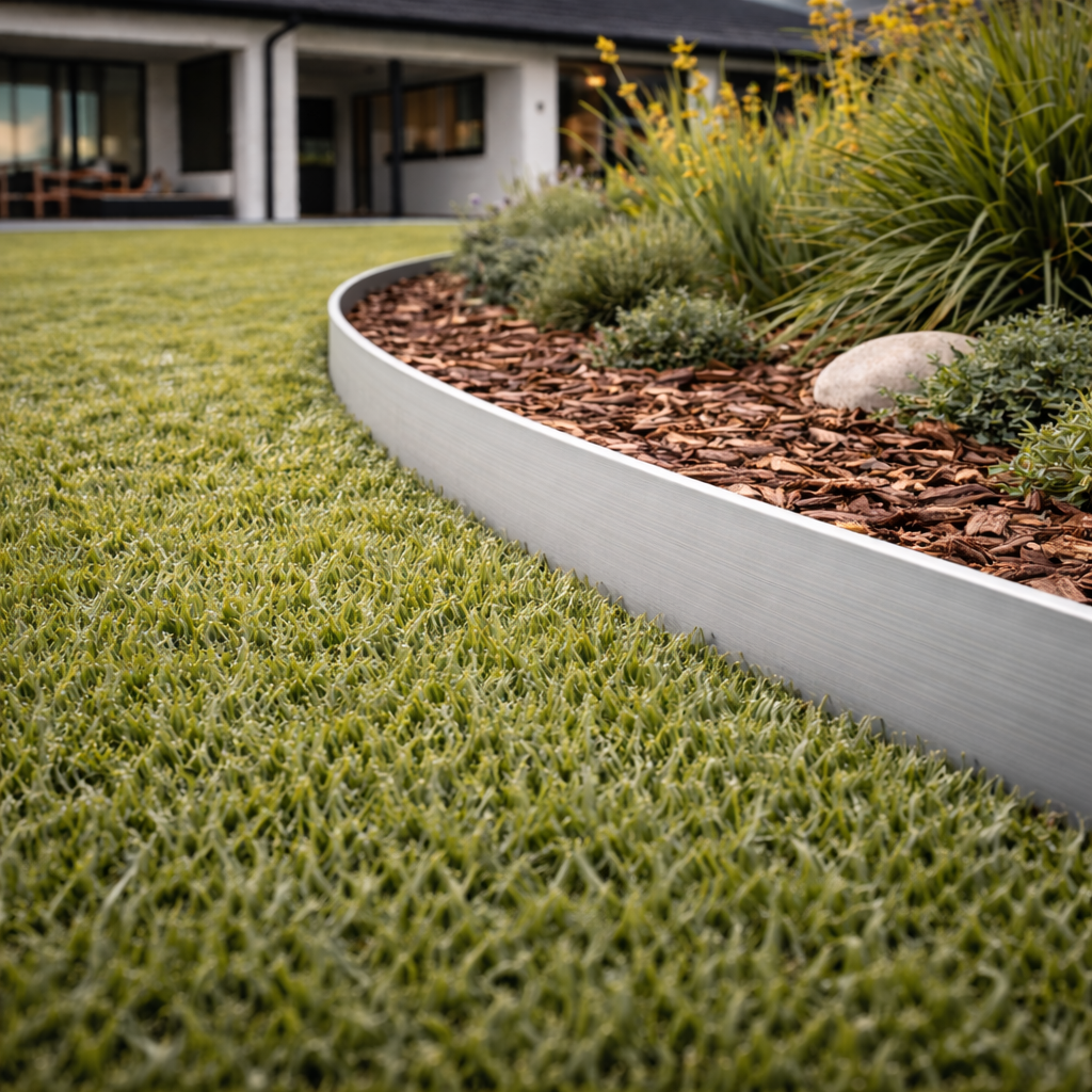 Defines the visible garden edge between lawn and garden beds.